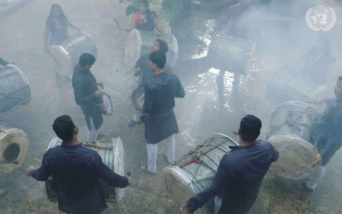 Mickey Hart and the International Drumming Ensemble produce a special drumming performance set to the most referenced and universally used rhythm called ‘clave’. This performance, created for the UN General Assembly and partnership, is centered around drumming being the rhythm of life, reminding us of our ancient roots and connecting our hearts through music. The musicians include renowned drummers from across the world.