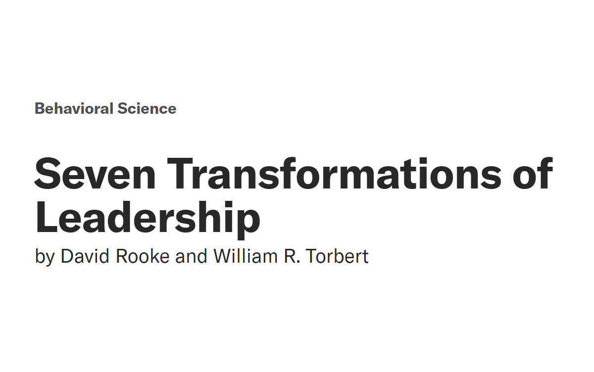 In this Harvard Business Review piece, authors William Torbert and David Rooke journey into the world of leadership and provide insights into the seven different action logics that drive leaders’ behaviors. Drawing on their extensive research with pioneering psychologist Susanne Cook-Greuter over twenty-five years, the authors offer a road map for leaders seeking to mature and evolve their leadership styles (2005).