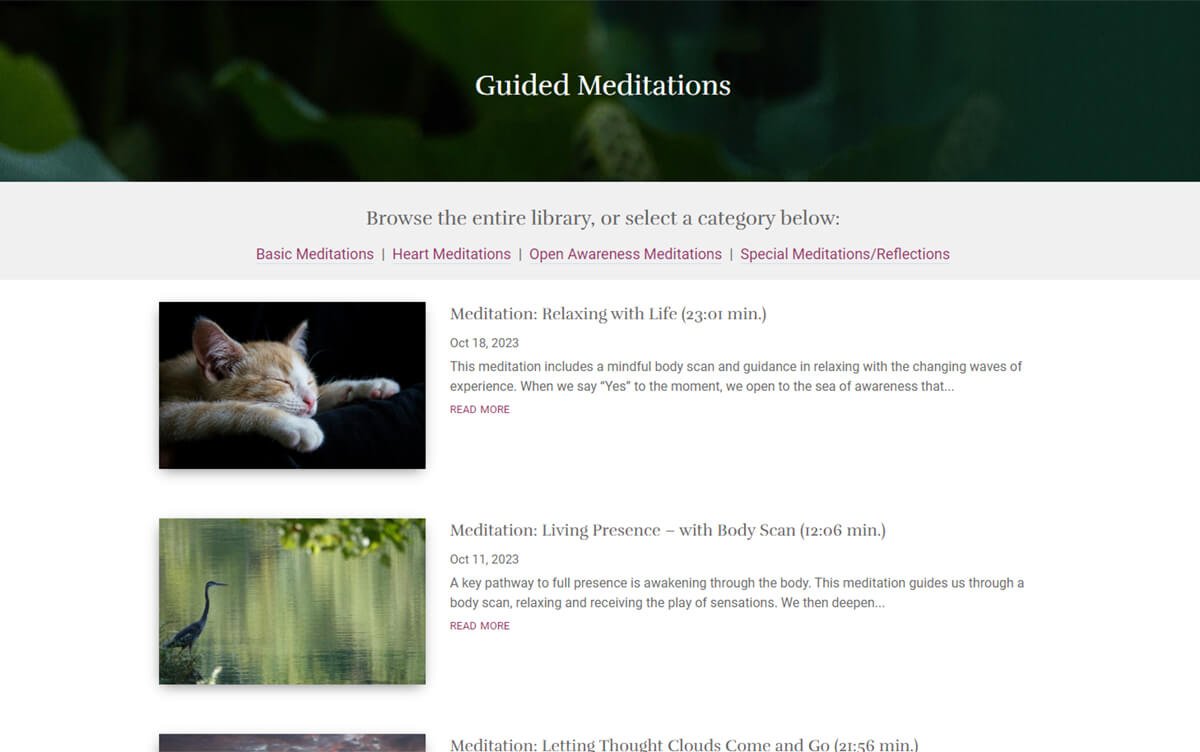 Here, you will find a library of short meditations offered by Tara Brach. The meditation topics include sessions focused on listening to your heart, letting go of past regrets, awakening your senses, cultivating loving awareness and curating a space of deep relaxation. Each video will guide you through the body and mind practice to help you form a sustainable habit and further your path toward enlightenment.